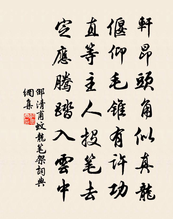 轩昂头角似真龙,偃仰毛锥有许功。直等主人投笔去,定应腾踏入云中。