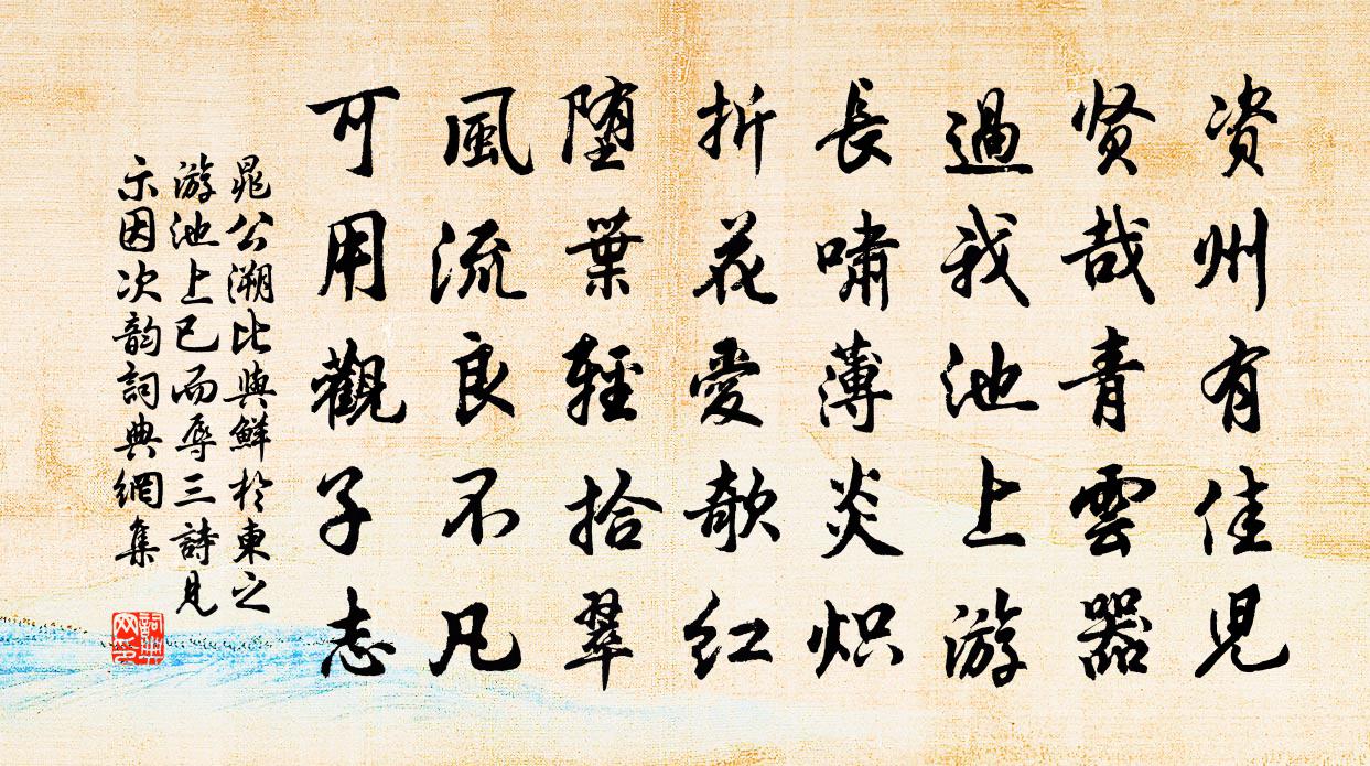 资州有佳儿,贤哉青云器。过我池上游,长啸薄炎炽。