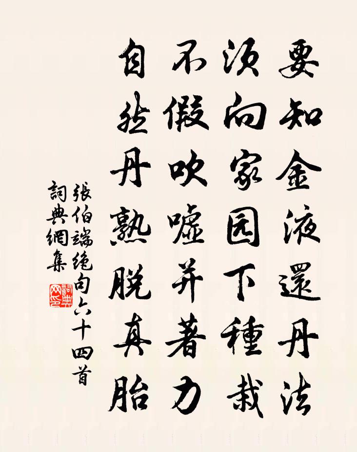 要知金液还丹法,须向家园下种栽。不假吹嘘并著力,自然丹熟脱真胎。